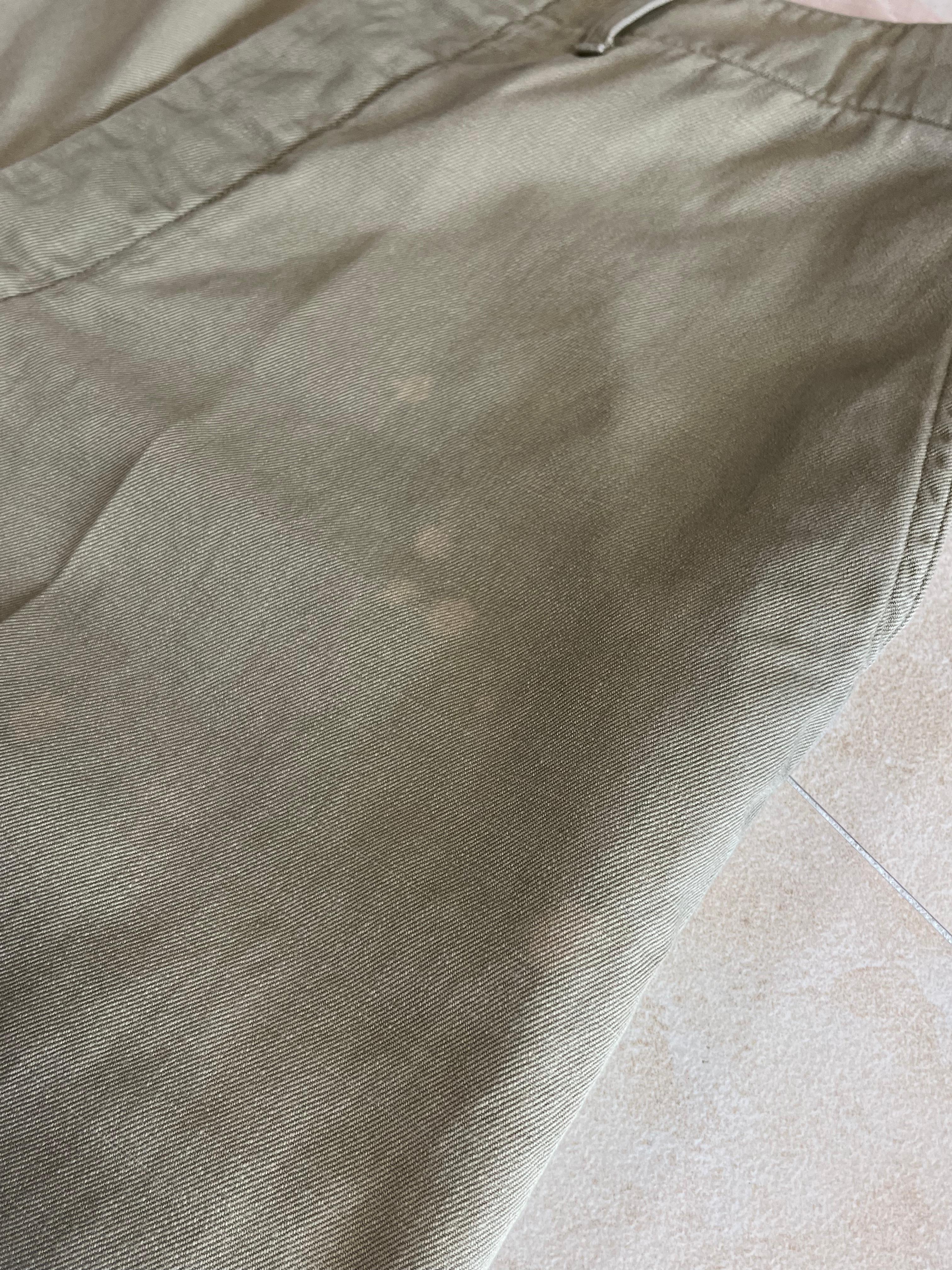 트라우저 역시 커버올과 마찬가지로 오랜 세월이 지나면서 생기는 자연스러운 빈티지함을 표현했다고 한다. 커버올보다는 밝은 색상의 베이지였지만 들어간 가공이나 철제 단추, 탈색 디테일을 통해 충분히 오랜 세월이 지난 옷처럼 보였다.